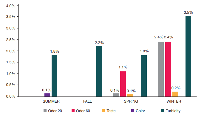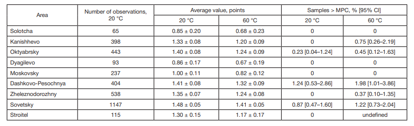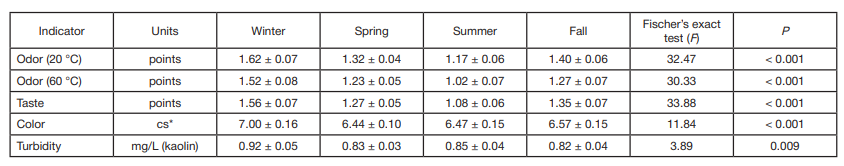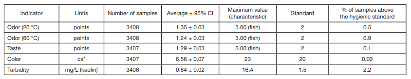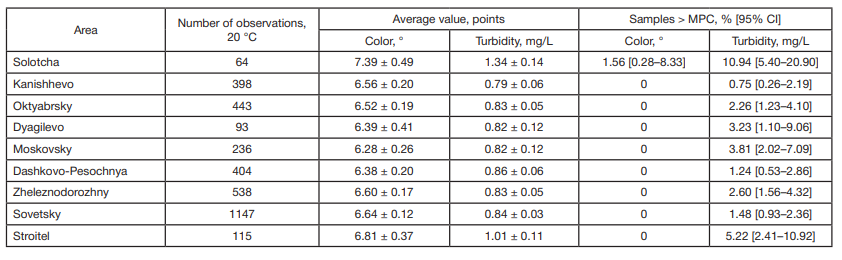 Hygienic features of the quality of drinking water from the regional center centralized water supply system based on organoleptic indicators