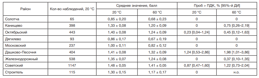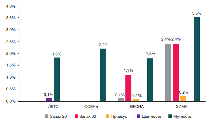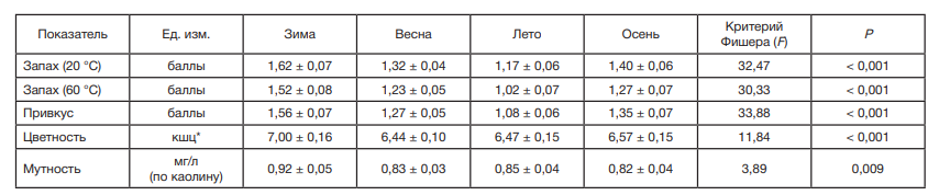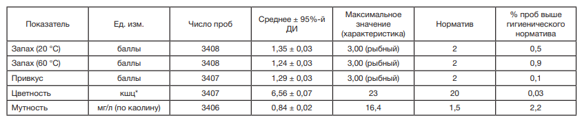 Гигиенические особенности качества питьевой воды централизованной системы водоснабжения областного центра по органолептическим показателям