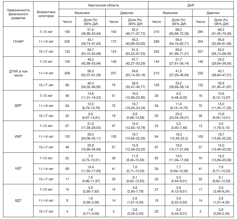 Оценка гармоничности физического развития школьников новых российских территорий