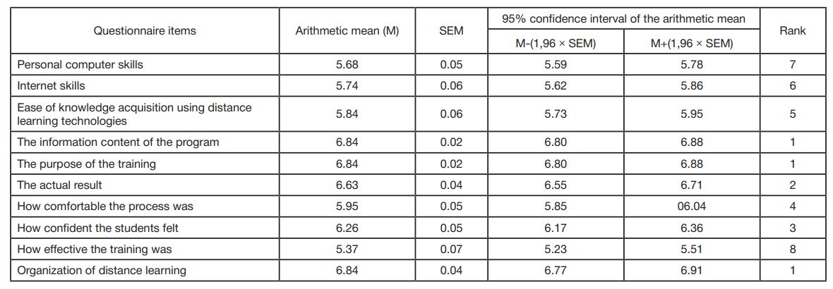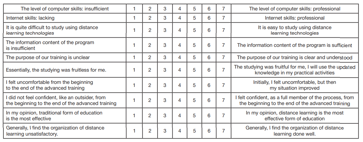 Table 1. Methodology for evaluating the effectiveness of distance learning