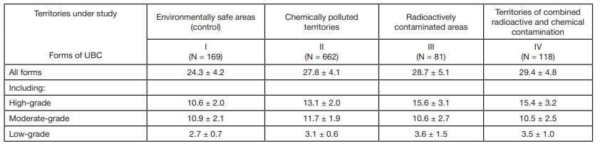 Compliance with ethical standards: the study used anonymized statistical information on the incidence of UBC in the Bryansk region in 2000–2019.