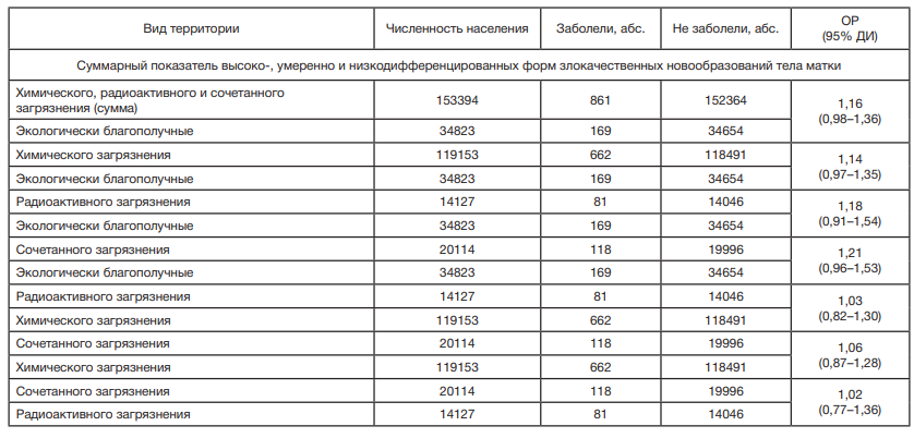 Сравнительная оценка заболеваемости злокачественными новообразованиями тела матки женщин, проживающих на экологически неблагополучных территориях (2000−2019 гг.)